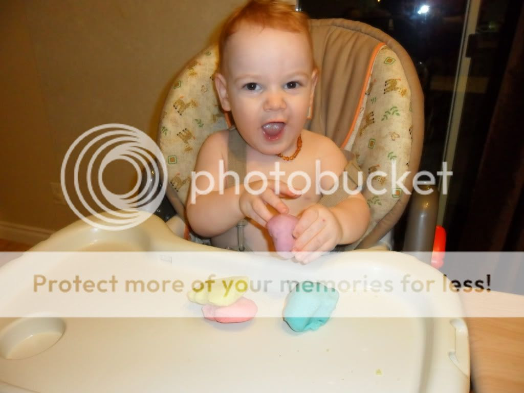 What better way to spend a chilly February night, then to make some homemade Play Doh with the boys. I used the recipe here and it was very easy and fast to make. The boys liked it alright. They enjoyed eating it which made me sick to my stomach because it is so salty! They didn't mind though. We also made a hand print each to keep. They also enjoyed putting it back in the storage containers and passing them back and forth. Tons of fun!